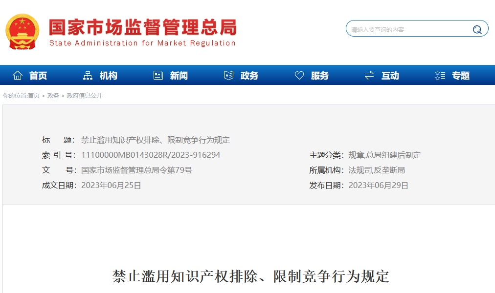 8月1日起施行!國家市場監(jiān)管總局發(fā)布《禁止濫用知識產權排除、限制競爭行為規(guī)定》|附解讀